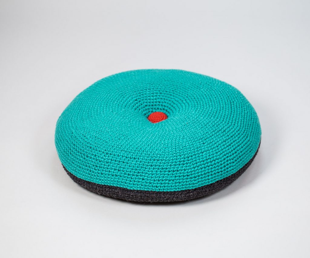 Round and hand-crocheted pillows Hasna are decorated by buttons on both sides. Front and back side are made in different colours, therefore you can use the pillows on both sides and in combination with other pillows that contain patterns, buttons, meshes, tassels, or fringes.